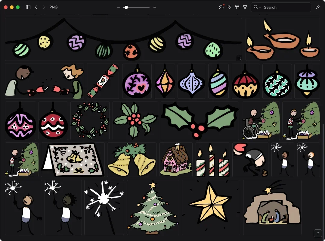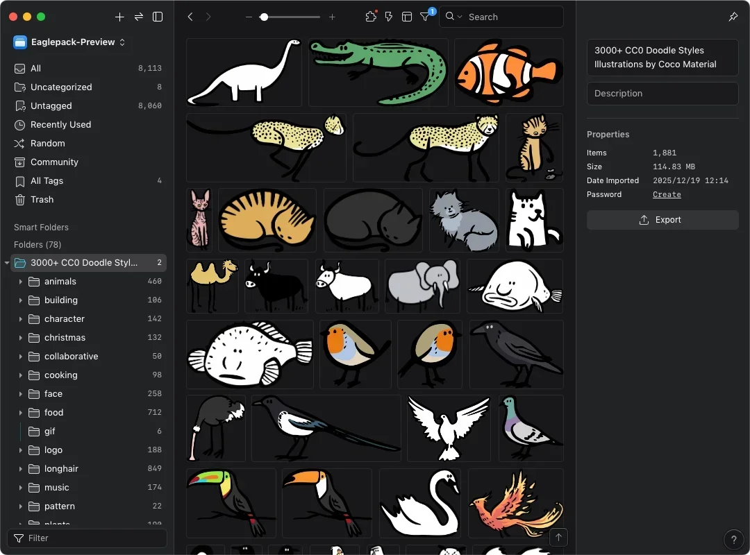 CocoMaterial 這款免費插畫庫,是由來自西班牙的 Kaleidos 團隊製作,採用隨性塗鴉的筆觸風格,繪製了共 17 個分類,超過 3000 款插畫。插畫類別涵蓋動植物、建築、角色、節日、烹飪與食物、音樂、學校與科技等等。